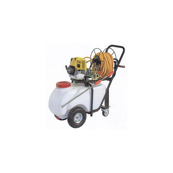 Motopompa per irrorazione con motopompa, realizzato in acciaio verniciato, montato se ruote pneumatiche. Serbatoio in polietilene da 50 litri con filtro d’aspirazione, filtro riempimento e tappo di scarico. Applicazioni: trattamenti antiparassitari a piante, fiori, vigneti, albero da frutto ed ortaggi, diserbo su viali ed aiuole, disinfezione di ambienti, aspersione di liquidi repellenti per insetti, piccoli lavaggi.
